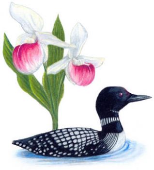 Solve Minnesota State Bird The Common Loon State Flower The Showy Ladyslipper Jigsaw Puzzle Online With 36 Pieces